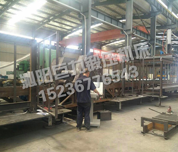 機械輔助部分包括:液壓橫向送料平臺(送進鋼板)、電磁吸盤上料部分、進料輥道部分、左右托料輥道部分、板料對正部分、出料輥道部分、電磁吸盤下料部分、液壓橫向送料平臺(送出成品)。